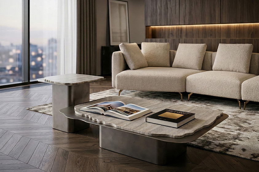 58DB-24056 Стол журнальный Travertine 120*120*29см