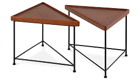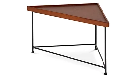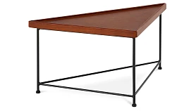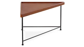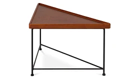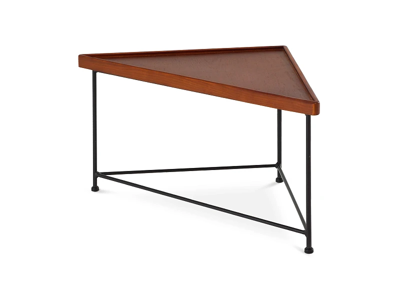 Журнальный столик в минималистичном стиле станет финальным штрихом в любом пространстве. В его дизайне элегантность смело сочетается с ритмичностью формы. Треугольную столешницу из массива дерева поддерживают грациозные ножки из металла, которые дополнительно укреплены перекладинами.