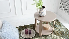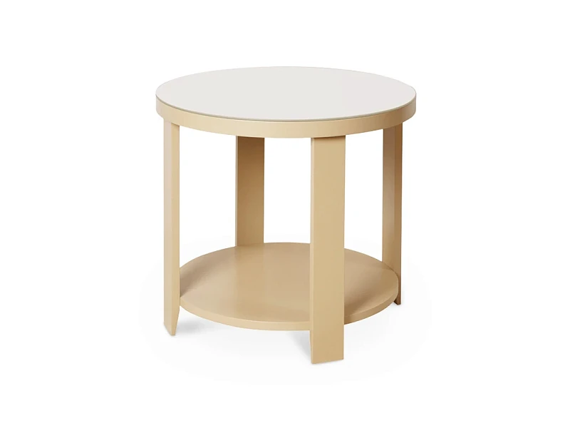 Круглый журнальный стол. Cтолешница декорирована цветным стеклом.