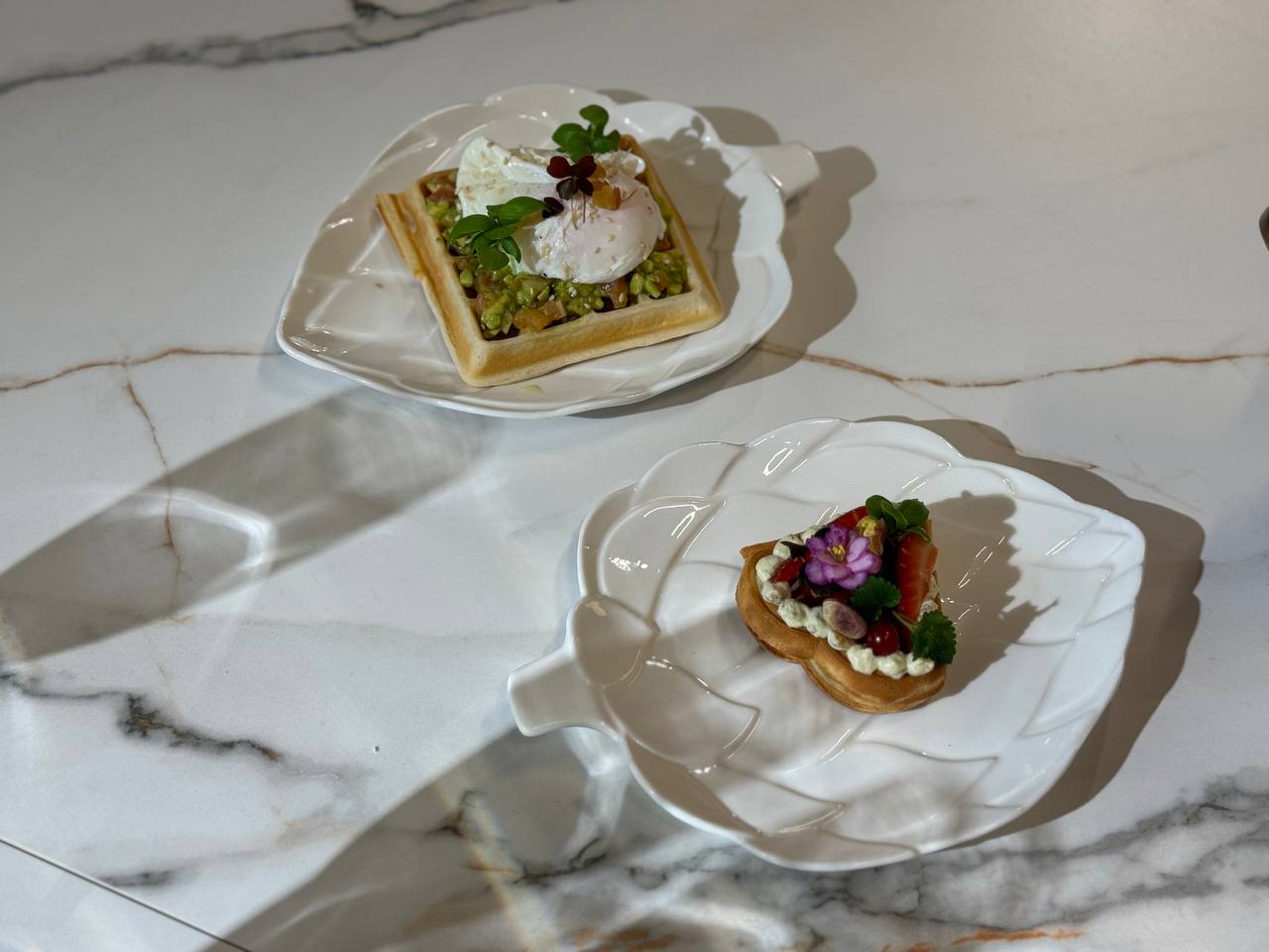 - протеиновые вафли с форелью, яйцом пашот и авокадо;