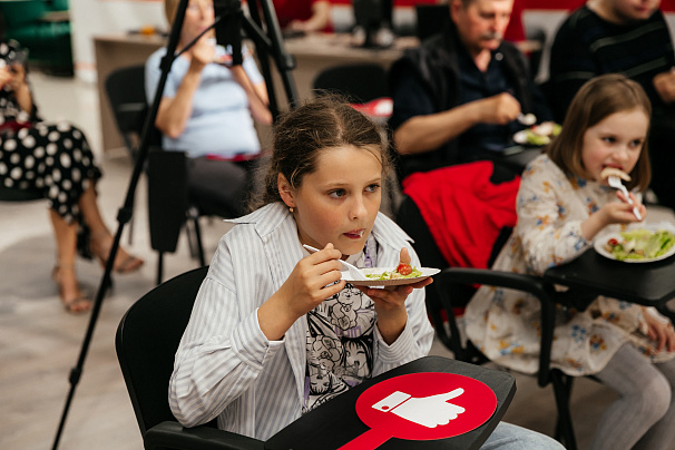 Блюда у них получились совершенно разными. Юлия приготовила салат по-домашнему вкусным и использовала знакомые многим ингредиенты. Николай же подошел к приготовлению блюда профессионально и использовал в качестве основного ингредиента камчатского краба. Полный фотоотчет с мероприятия уже выложен в нашем сообществе ВК.