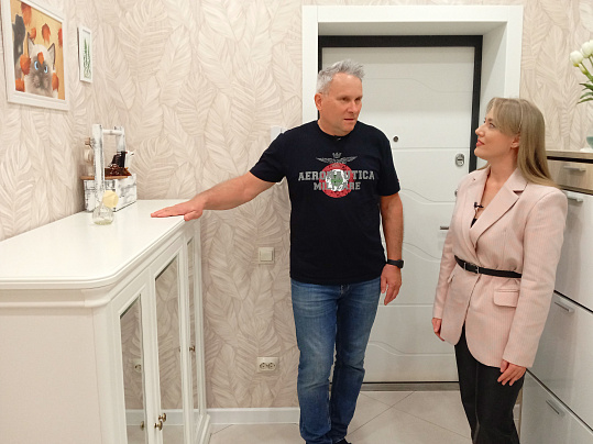 Интерьер квартиры полностью продумала жена Елена, и он получился цельным, стильным и функциональным. Классическая темная мебель и обилие зеркал эффектно смотрятся на фоне светлых стен. Многие предметы мебели были изготовлены на заказ персонально для четы Антоновых, например, комод с зеркальными дверцами в прихожую и вешалка под высокий рост всех членов семьи.