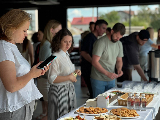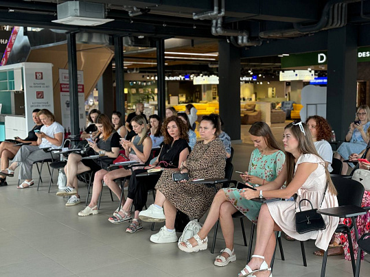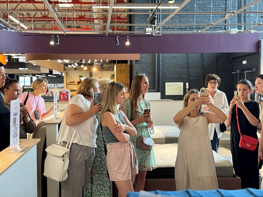 От теории участники встречи перешли к практике: в ходе экскурсии по мебельному центру они снимали видео и впервые монтировали Reels. Улыбки не сходили с увлеченных лиц, а готовые результаты радовали и вдохновляли на новые работы.