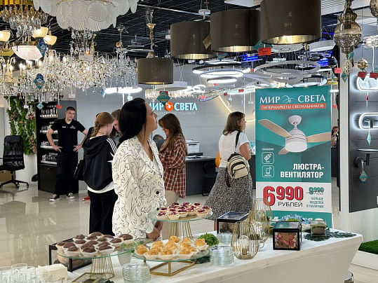 Профессионалы по обустройству дома с удовольствием откликнулись на приглашение организаторов, чтобы не пропустить выступление интересного спикера и обсудить с коллегами новинки в освещении. И гипермаркет светильников «Мир света» — лучшее место для встречи, ведь в торговом зале представлено более 10 000 современных предметов освещения: светильники, люстры, бра, торшеры, трековые системы и многое другое.