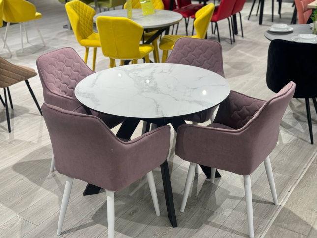 Габариты стола: 100х100 см, высота 77 см. Габариты столешницы в разложенном виде: 140х100