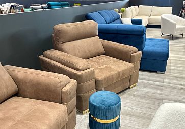 В ассортименте салона представлена мягкая мебель: диваны, пуфы.