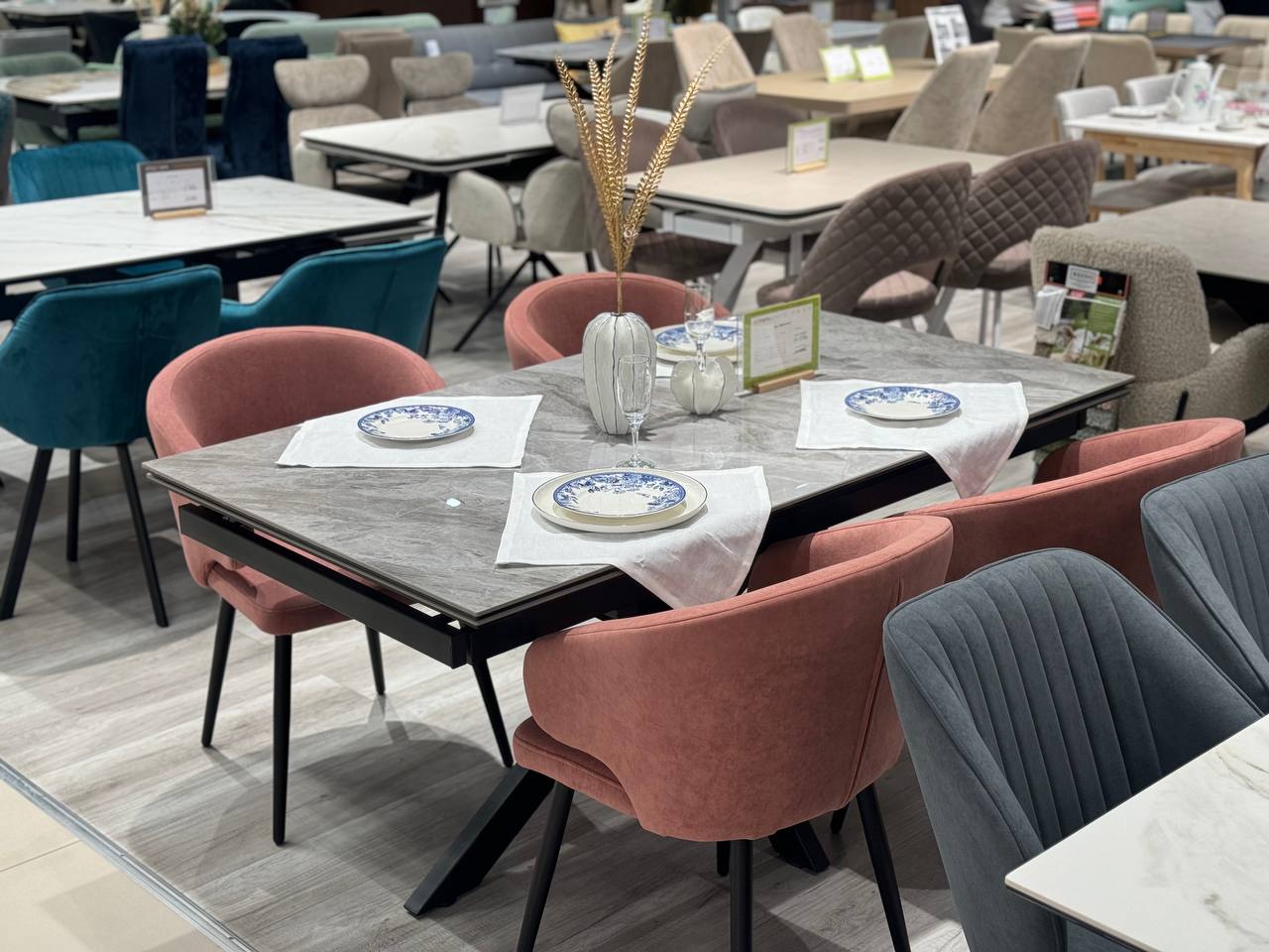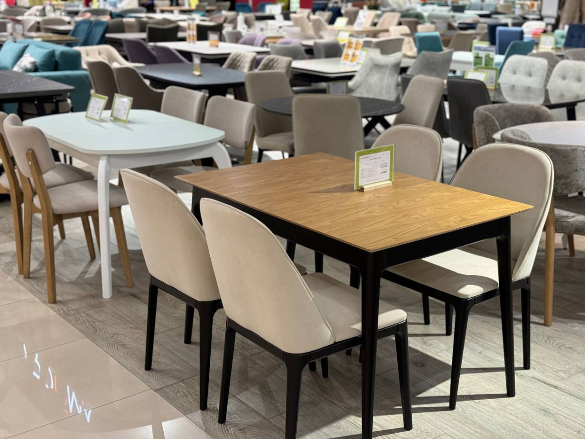 В ассортименте салона представлены: обеденные столы, стулья из массива дерева, стулья на металлокаркасе, банкетки из массива дерева.